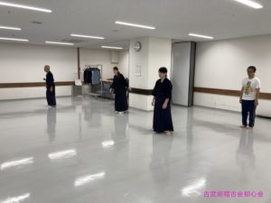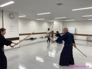 五本目を題材に稽古を進める。この日の題材は、半身の歩みと構えだったかと思う。当たり前の身遣いではあるが、表に出して課題にすると意図がはっきりして良い効果があった。それぞれ動きが良くなり、型の形が取れるようになってきたのは良い副産物であった。松風での打ち払いにおいて、方向の違いで体捌きの難度が変わるのは良い発見だった。あまり意識したことではなかったので、良い学びとなった。