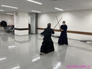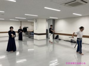 袈裟打の延長で二本目の稽古に入り、仕方・打方の動きをとおして理解を深めて貰う。各位素直なので、稽古した動きを良く表現できていた。杖先の方向と縦回転時の先をいかに使うかが今後の課題かと思う。