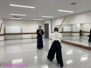 一:これまで当会で稽古してきた型と雰囲気が違うので戸惑いは織り込み済みであったが、良く頑張って覚えて貰えたと思う。(稽古始めに相応しい稽古になった)道具と身遣いの一致が最初の関門になるので今後の稽古で少しずつ形を整えて貰えればと思う。打込みを立てると伝えると想定と違ったので反省!!伝える言葉の重要性を再確認。